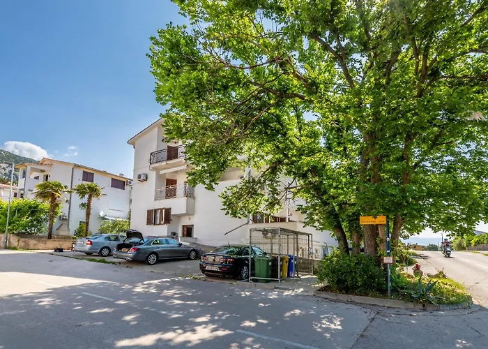 Apartments With Parking Space Baska, Krk - 22408 dispose d'un balcon, d'un coin salon et d'une cuisine entièrement équipée, ainsi que de conforts tels qu'une climatisation. L'appartement vous invite dans 2 chambres à coucher. Il offre cet immeuble avec 1 salle de bains. De plus, vous trouverez une douche.